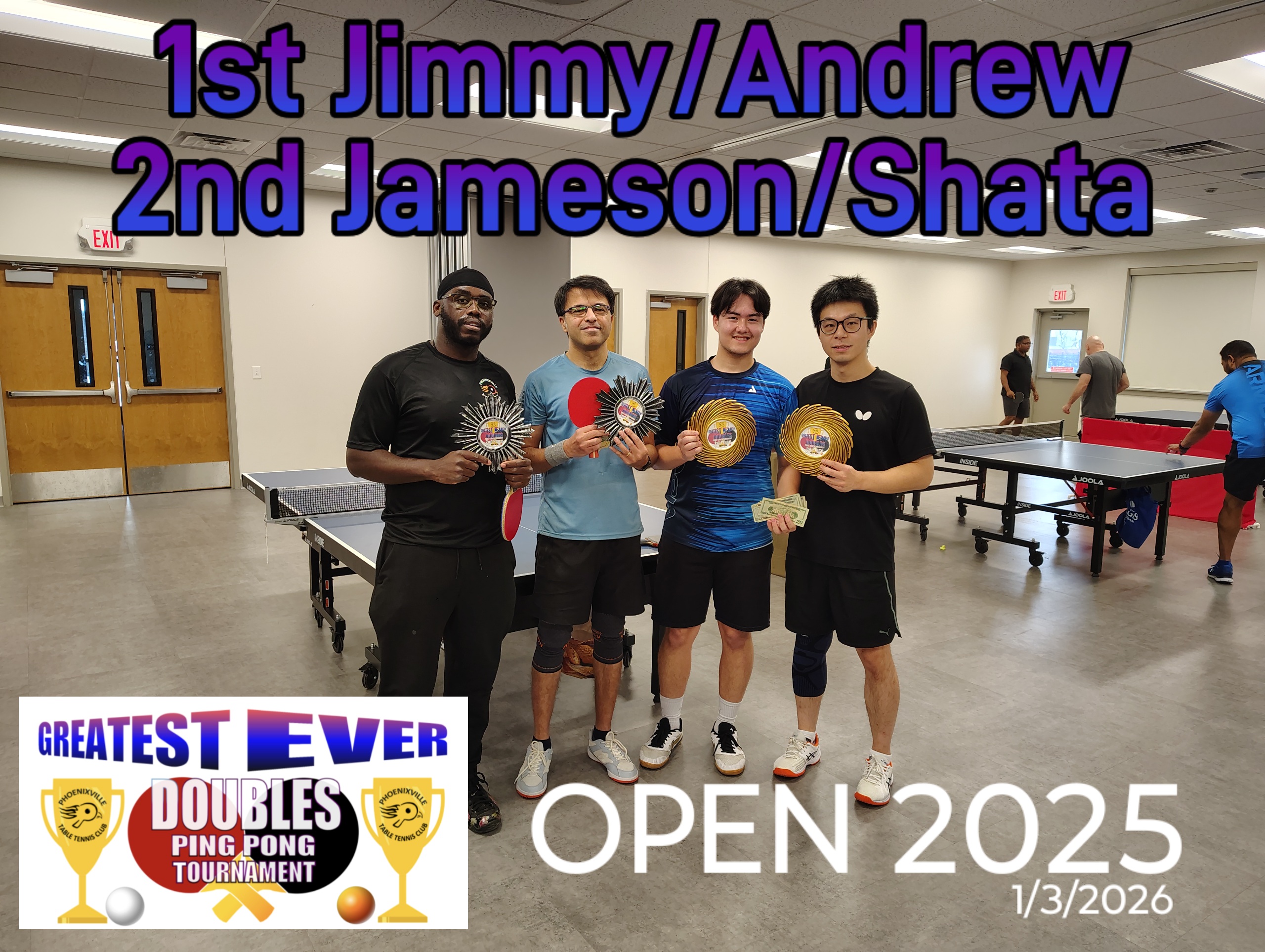 Each spring, starting in 2023, the Table Tennis Championship of the combined Chester and Montgomery counties will be a single elimination tournament, held at the Phoenixville Table Tennis Club. In order to participate, players must live, work, or go to school in Chester or Montgomery Counties of Pennsylvania. Players entering the singles open event must also record six match wins against six different individuals at the club, during open play, during the two months preceding the tournament. In addition to an open, there are juniors, doubles, and a women's divisions. 2026 We have extended the wins to those at Exton Table Tennis Club and Infinite Loop Table Tennis Club.